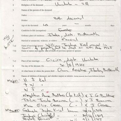 KRIEL Johannes Theodorus Louis died 1920