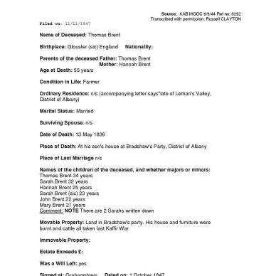 BRENT Thomas - died 13 May 1836