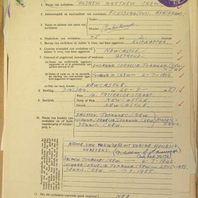 CREW Andrew Matthew died 20 August 1957
