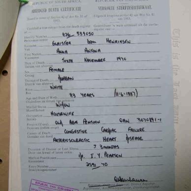 GLAISTER Anna Antona born HENDRIKSEN - died 6 Nov 1970