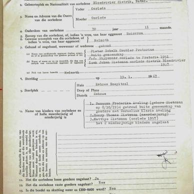 Deceased Spouse: Wilhelmina BEUKES - died 1916 Divorced Spouse: Cornelia Susanna VERMAAK Surviving Spouse: Magdalena...