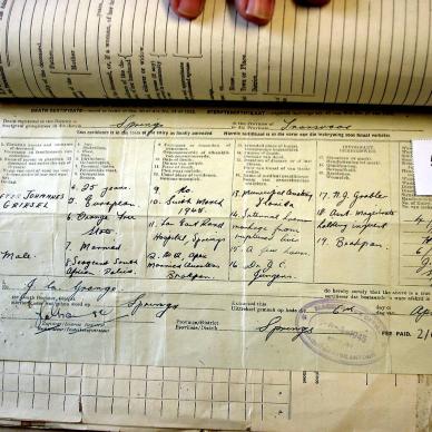 Born abt Apr 1891 in Morgenzon, Tvl. Died 27 Jul 1959 in her residence. Age 68yrs 3mths.