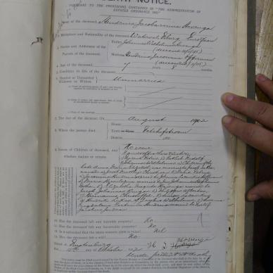 Born abt 1883 OFS, died 4 Nov 1918 at home on the farm Nooitgedacht, dist Pietersburg, Tvl. Age 35yrs 3mths.