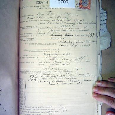 Born abt 1846 Colesberg, Cape Colony, died 18 Apr 1908 in a house on Claim no 6505, farm Driefontein, no 148, dist....