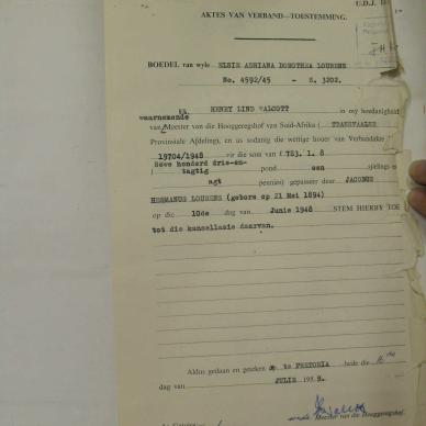 Eggenote LOURENS Aletta Susanna nee LOURENS Voor-oorlede eggenote LOURENS Elsie Adriaana Dorothea nee OPPERMAN - 1945