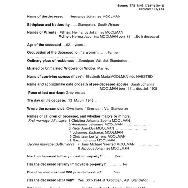 MOOLMAN Hermanus Johannes - died 13 Mar 1946