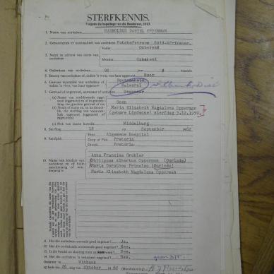 OPPERMAN Harnoldus Daniel - died 18 Sep 1962