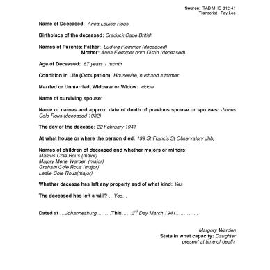 ROUS Anna Louise born FLEMMER - died 22 Feb 1941