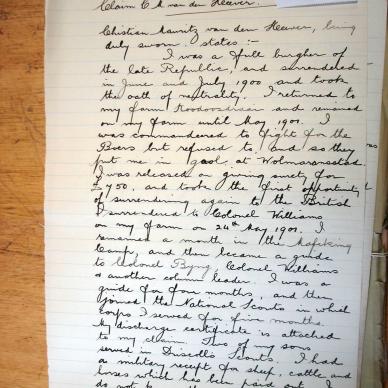 Son - Mauritz vd Heever. Son - Cornelius Johnannes vd Heever. Arrested by Genl Du Toit, released on bail of £750. Family taken to Krugersdorp, abt May 1901, by Col. Williams Column.