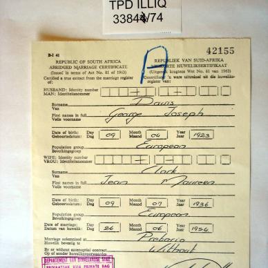 Marriage Certificate included.