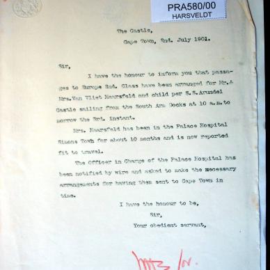 Sent to Bellevue Camp, Simonstown as POW. Brother-in-law - Gerhardus Johannes DU TOIT. Father-in-law - Louis Jacobus...